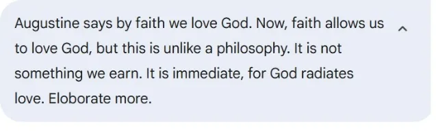 When Augustine looks at philosophy from the perspective of love, he sees that philosophy can't succeed on its own — it runs into a dead end (“impasse”) if it thinks it can operate without God.