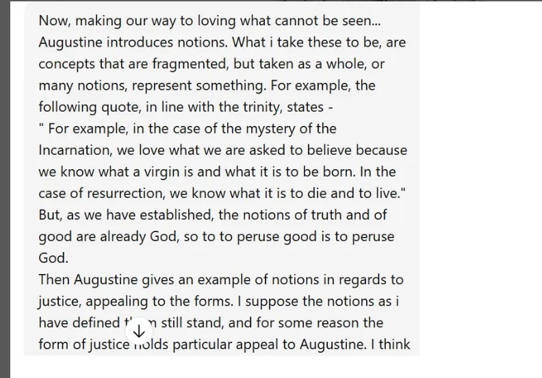 So, perception ≠ understanding, but it is the starting point of understanding. This connects to his Platonic influence: we ascend from the senses to the soul’s understanding, and finally to truth in God.